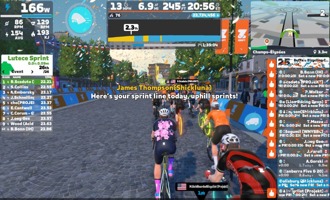January is also our Sprint Challenge! We will be featuring sprint-heavy circuit courses for our rides. In the second hour, each sprint will be worth 3-2-1 points for the men and women, and the riders who collects the most points by the end of January will get a gift card to one of our sponsoring local bike shops! Each sprint will be handled as we do in our other rides, ride together at 2.5 w/kg, wait for the call to sprint, then regroup after. All sprints are optional.